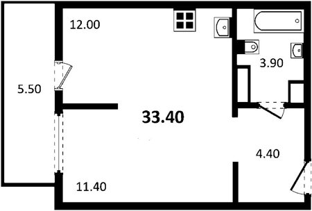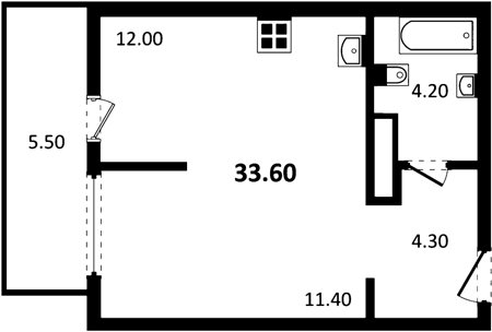 Площадь от 33.54 м2