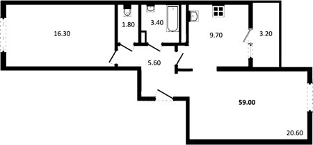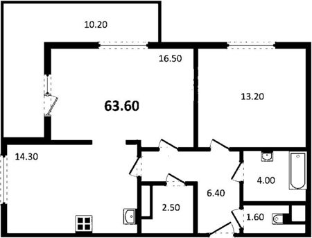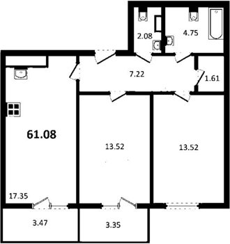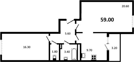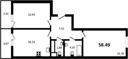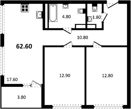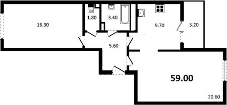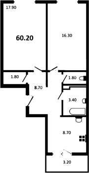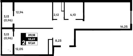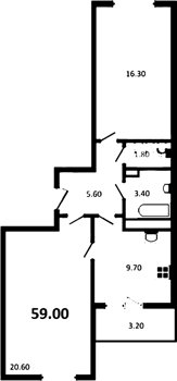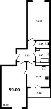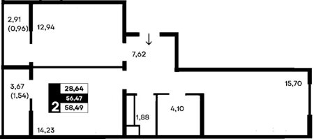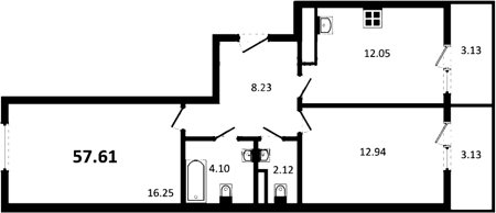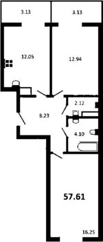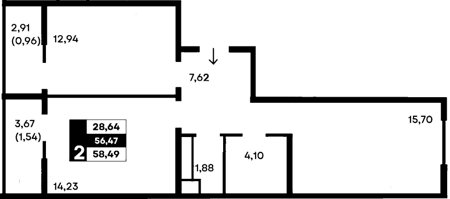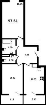 Площадь от 57.61 м2