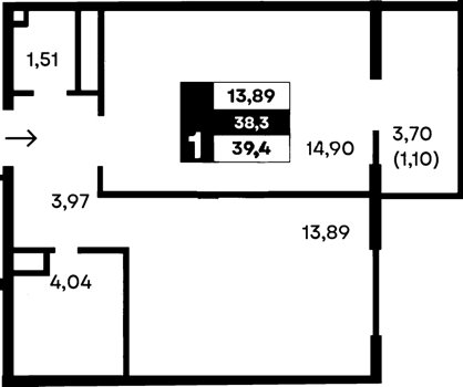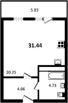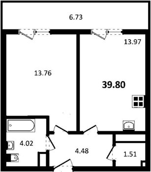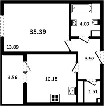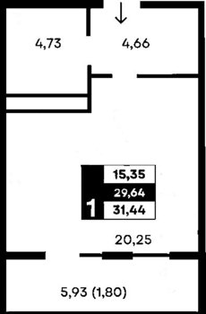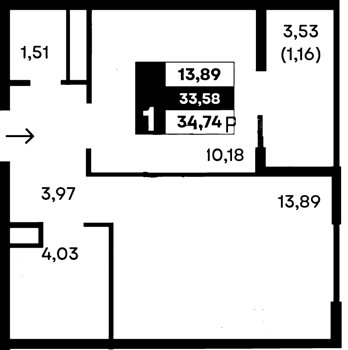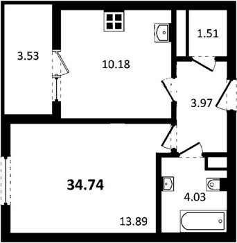 Площадь от 34.74 м2
