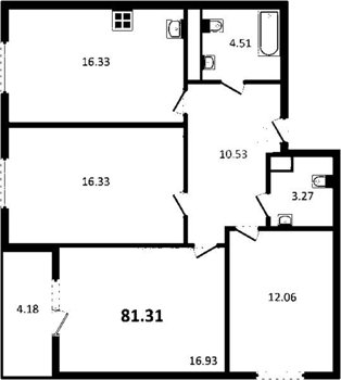 Площадь от 77.5 м2
