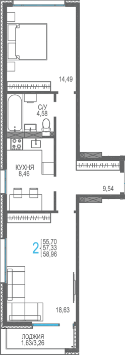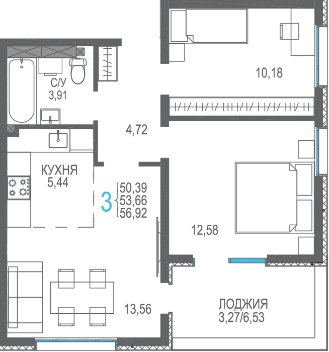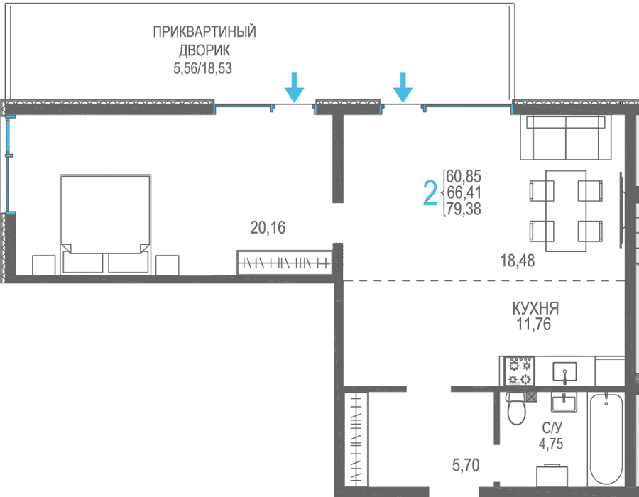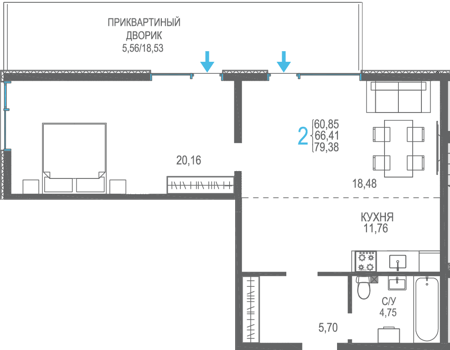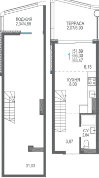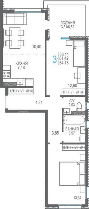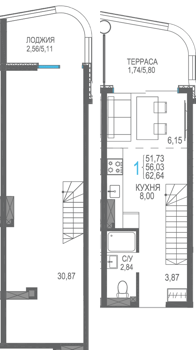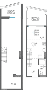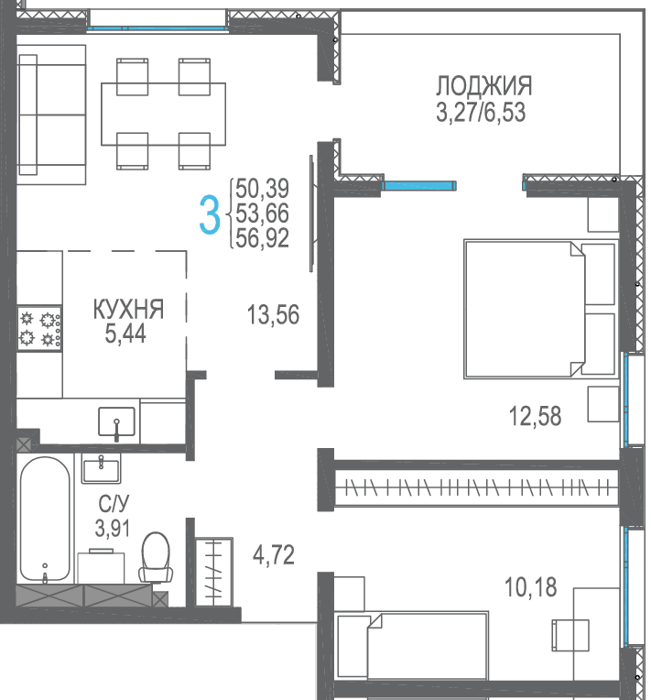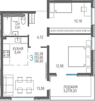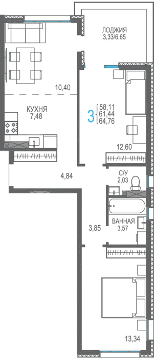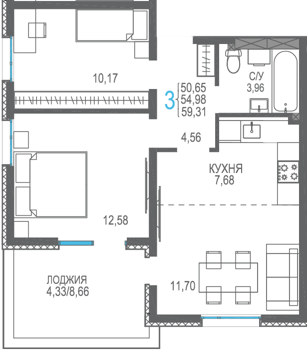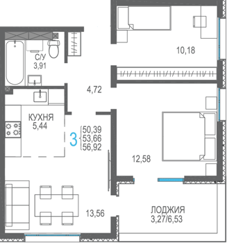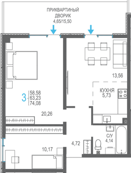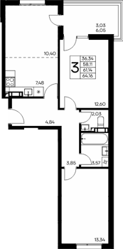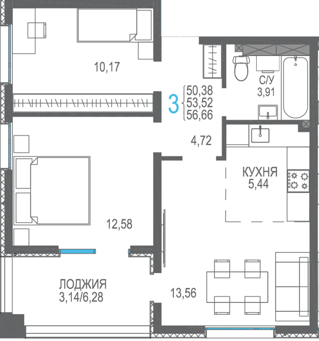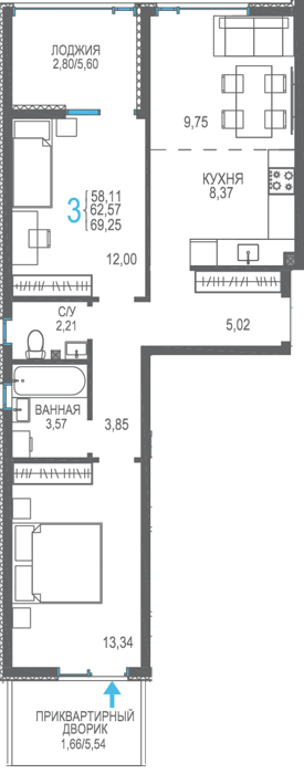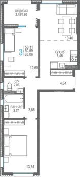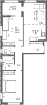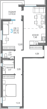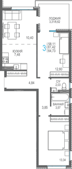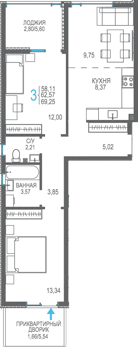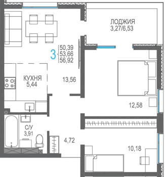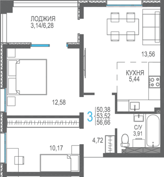 Площадь от 56.66 м2