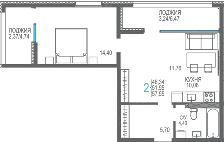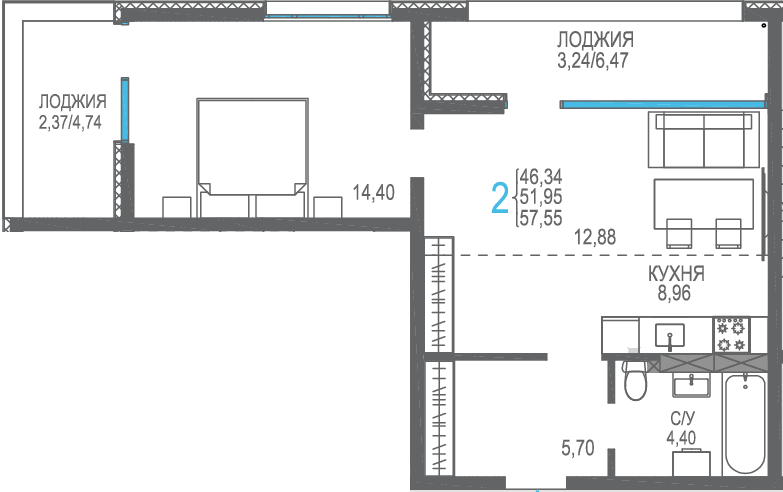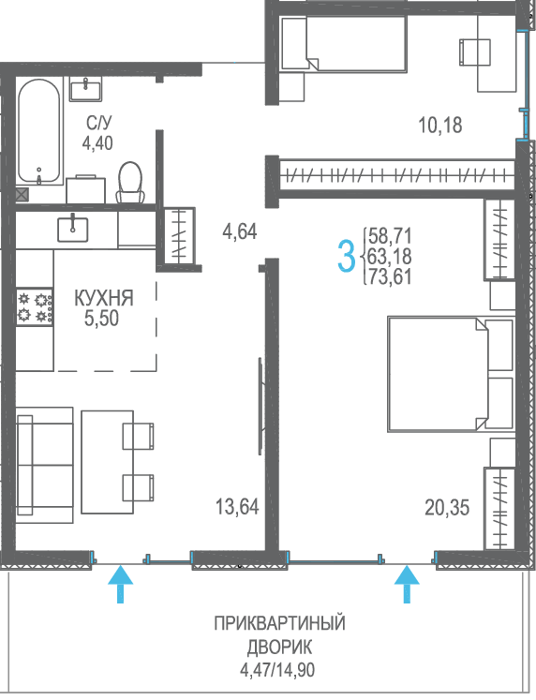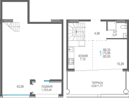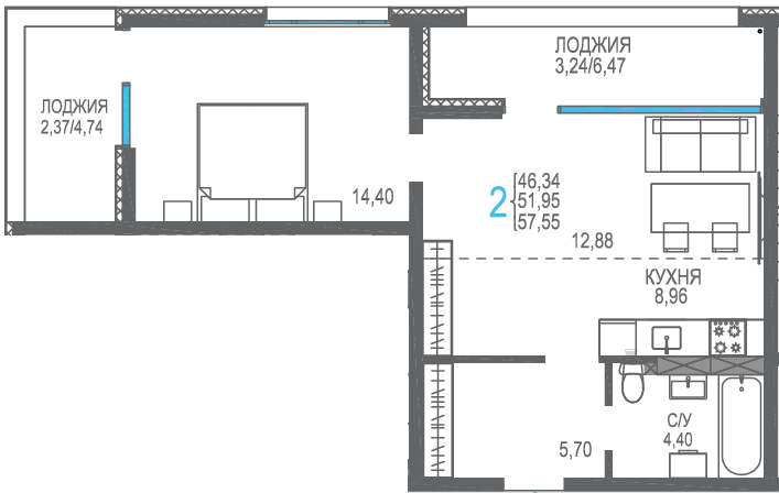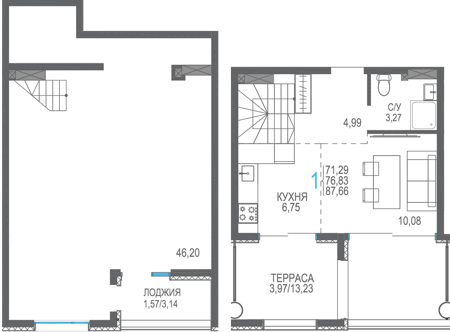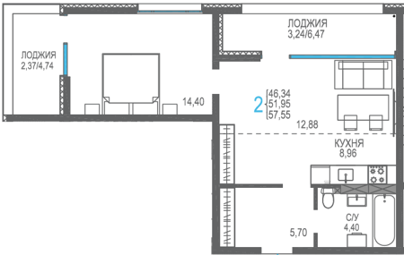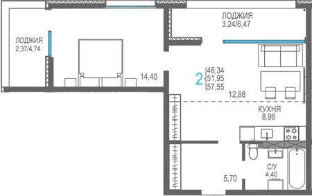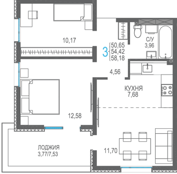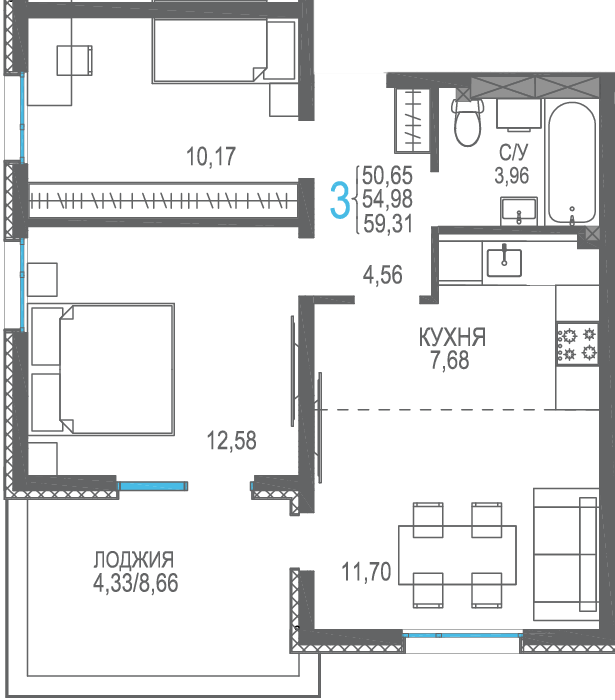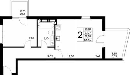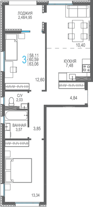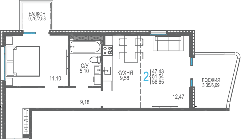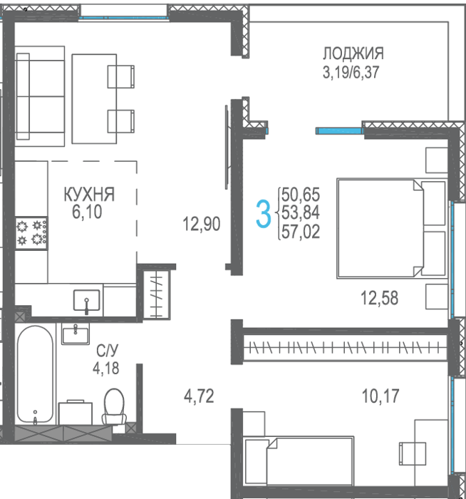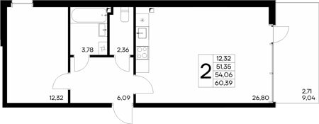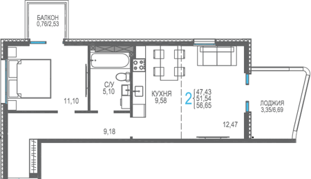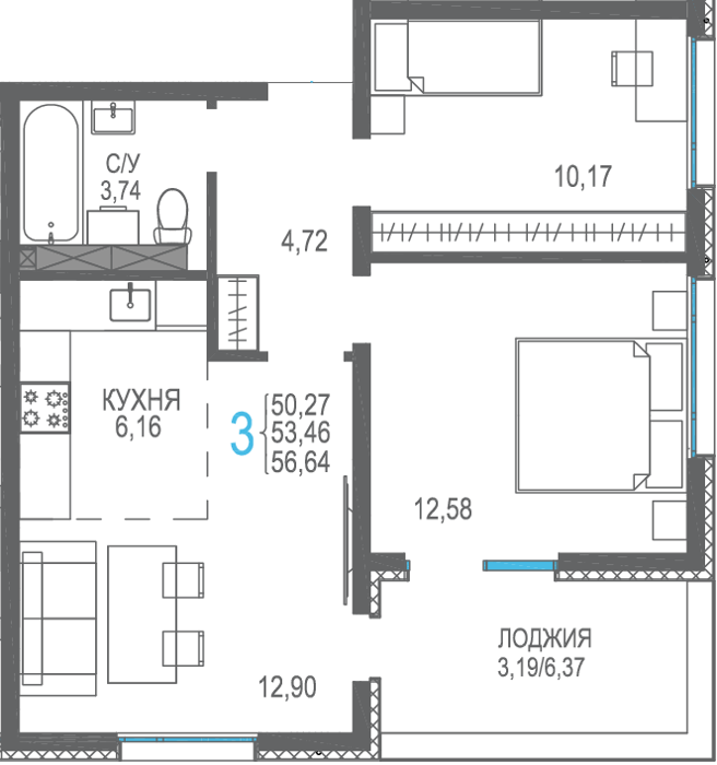 Площадь от 56.66 м2