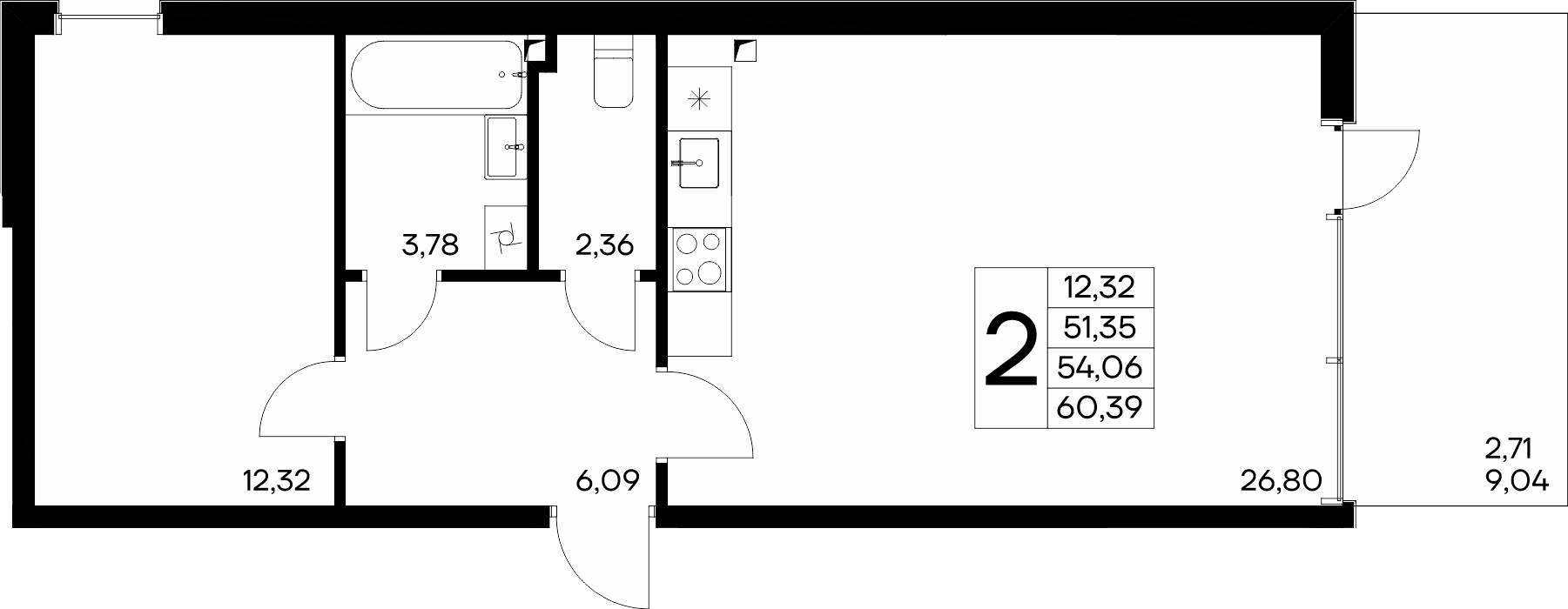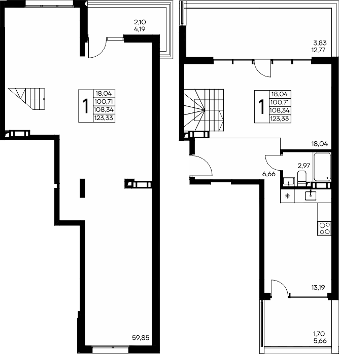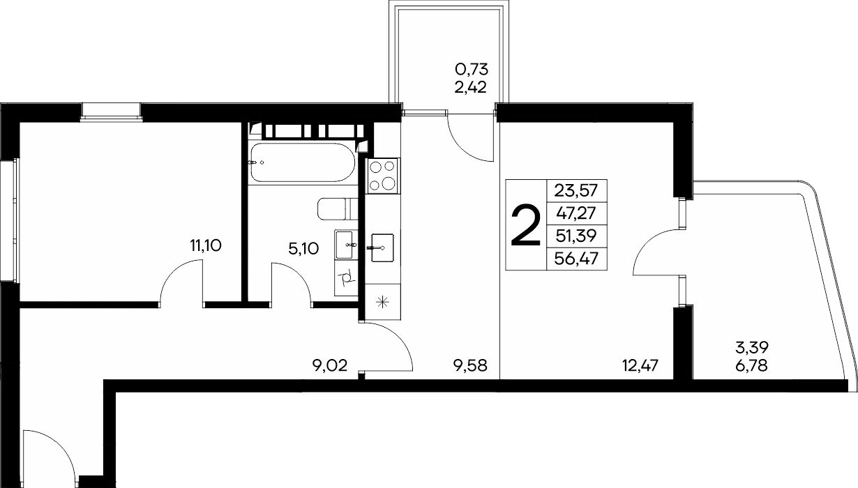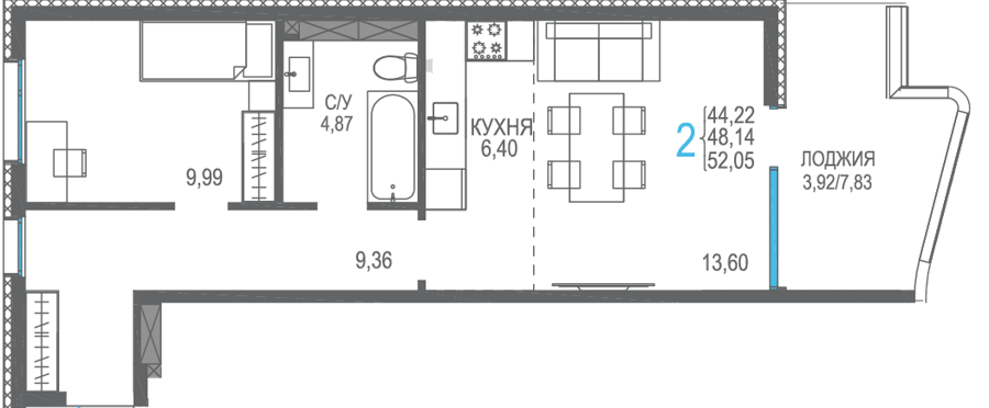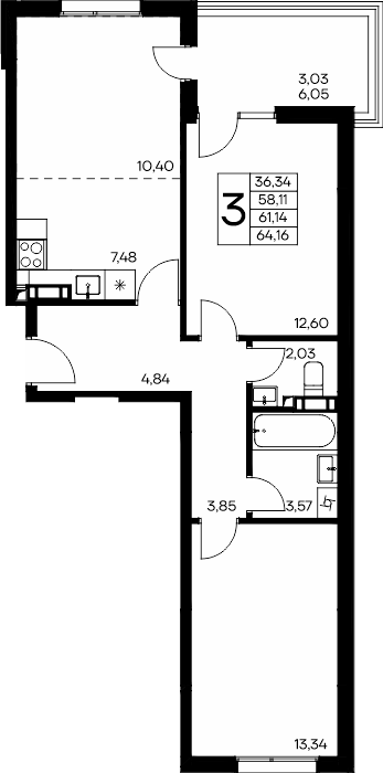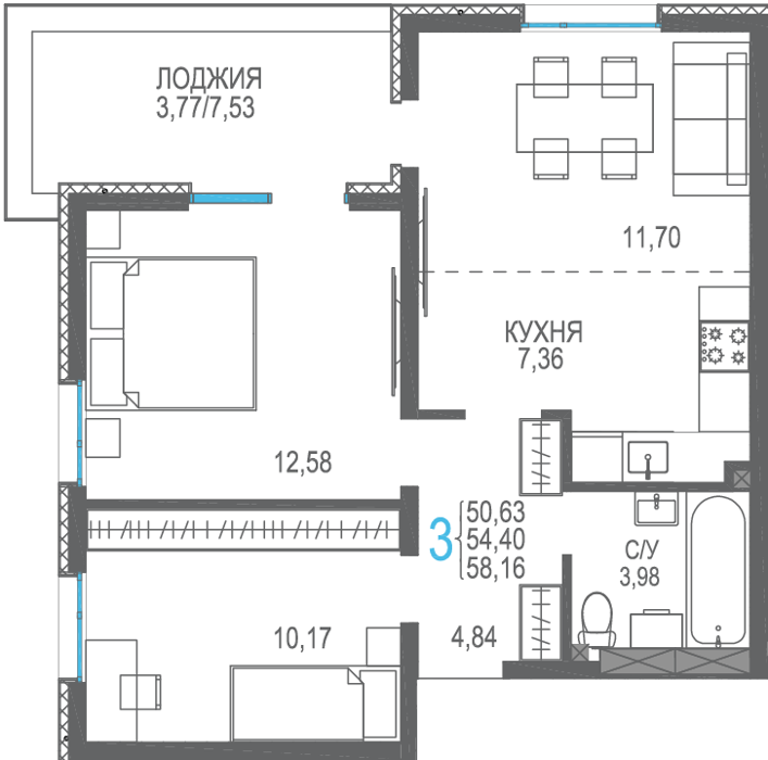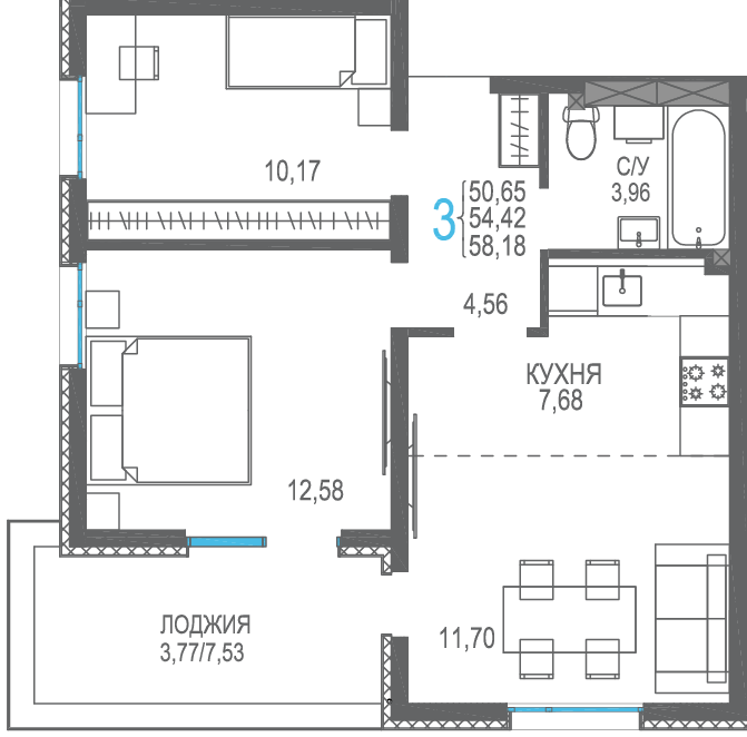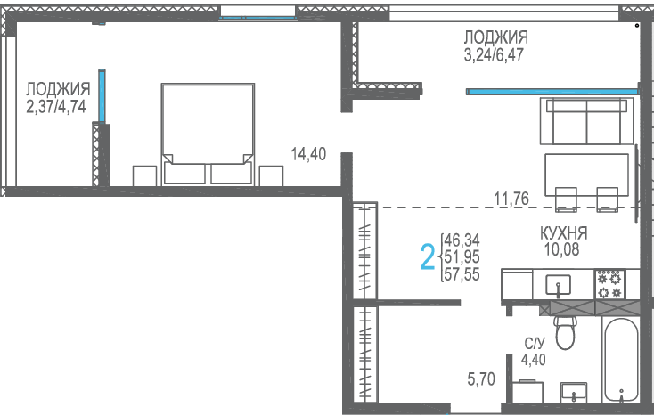 Площадь от 56.66 м2