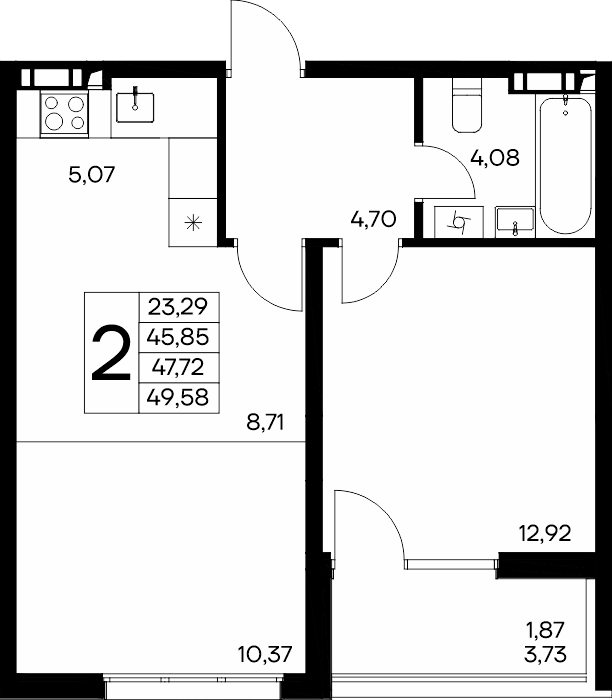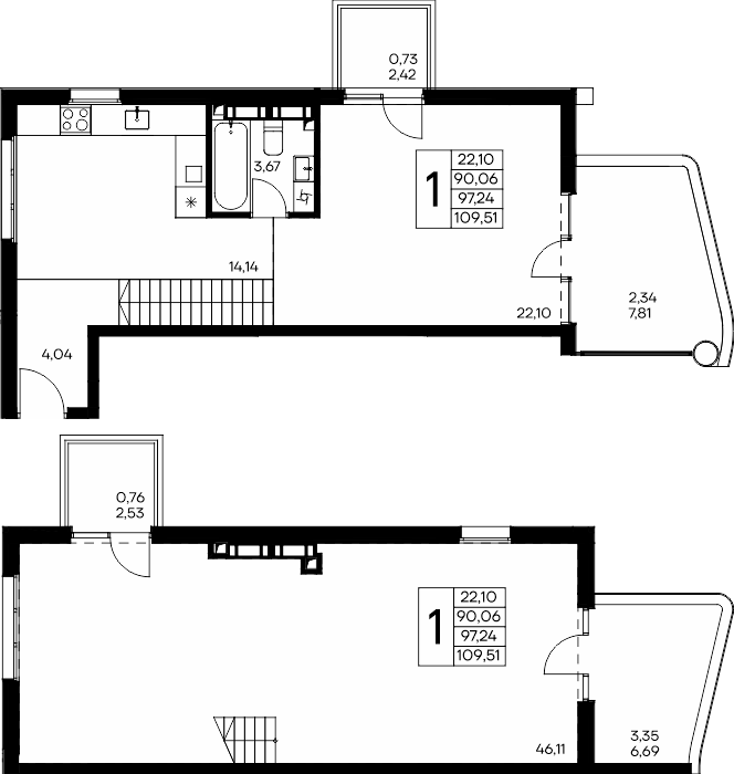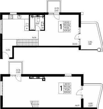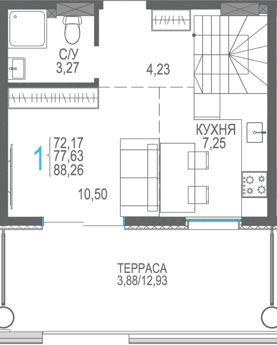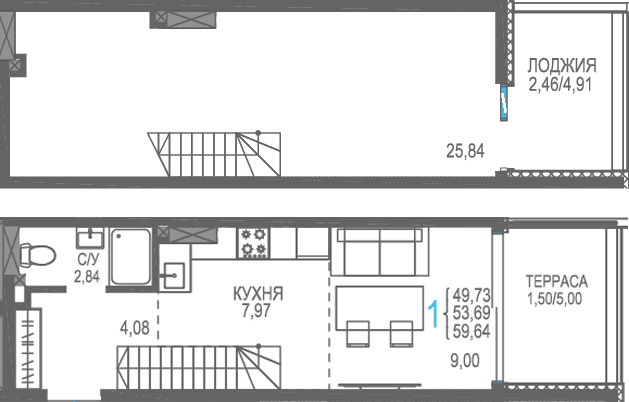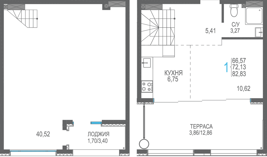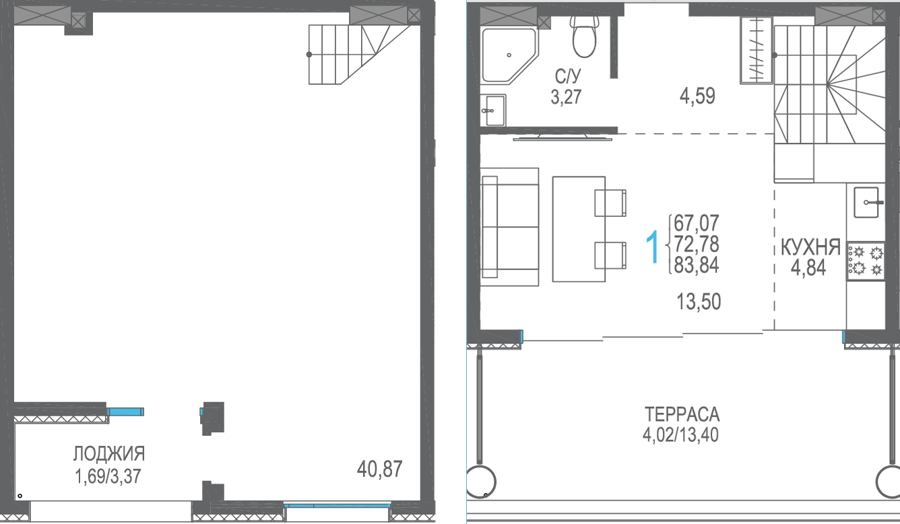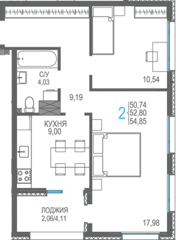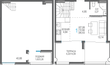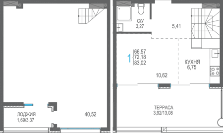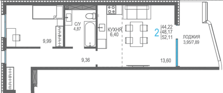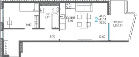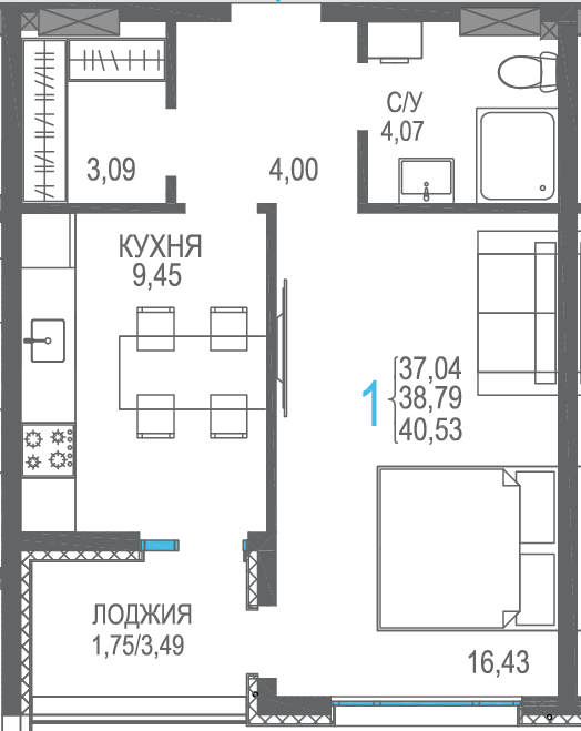 Площадь от 40.53 м2