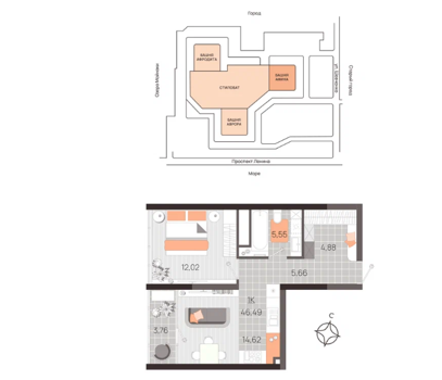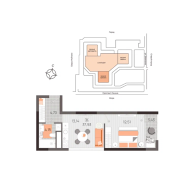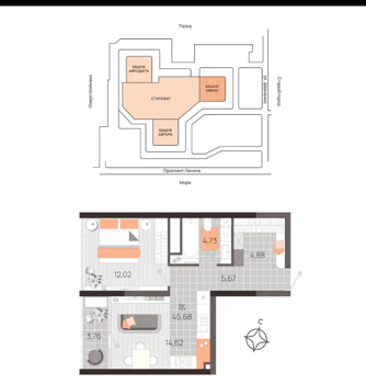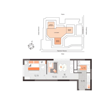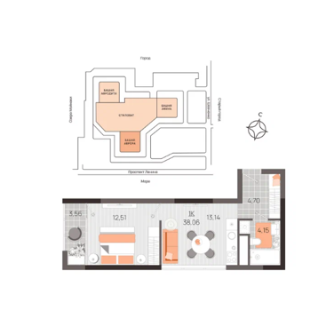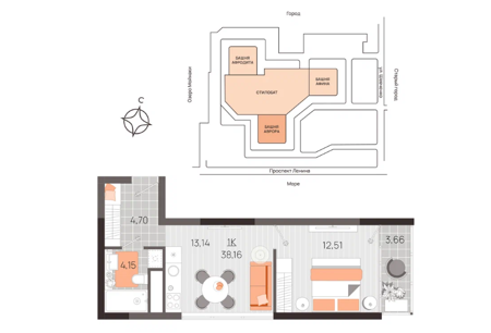 Площадь от 37.8 м2