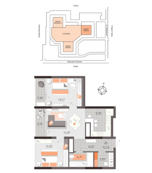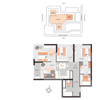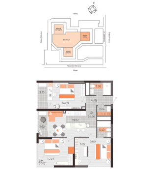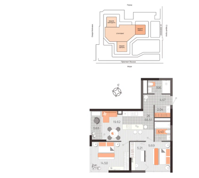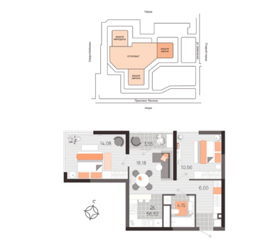 Площадь от 56.5 м2